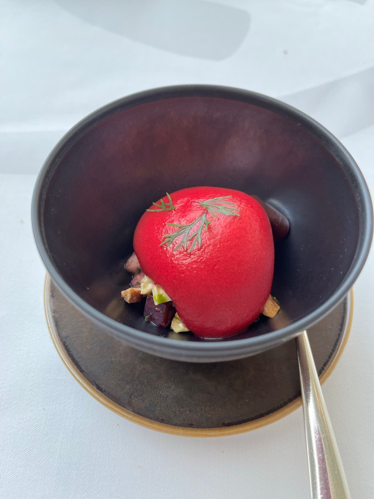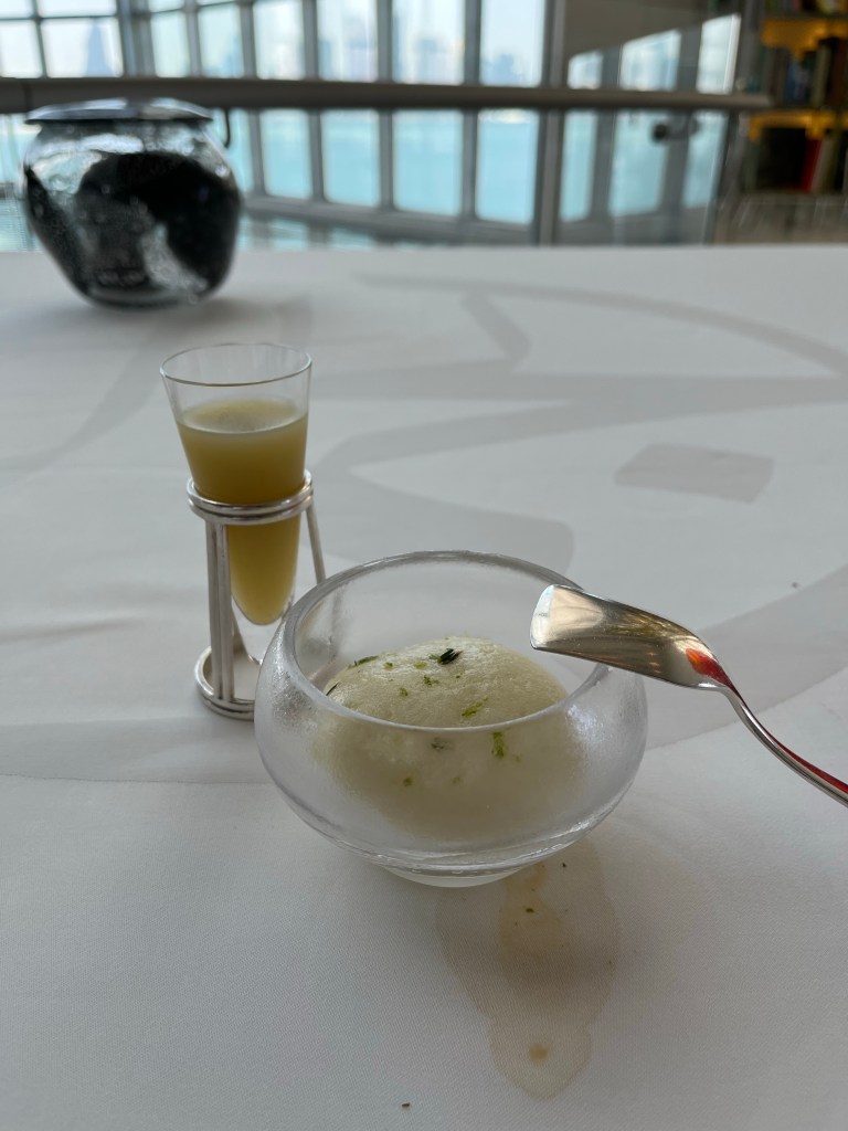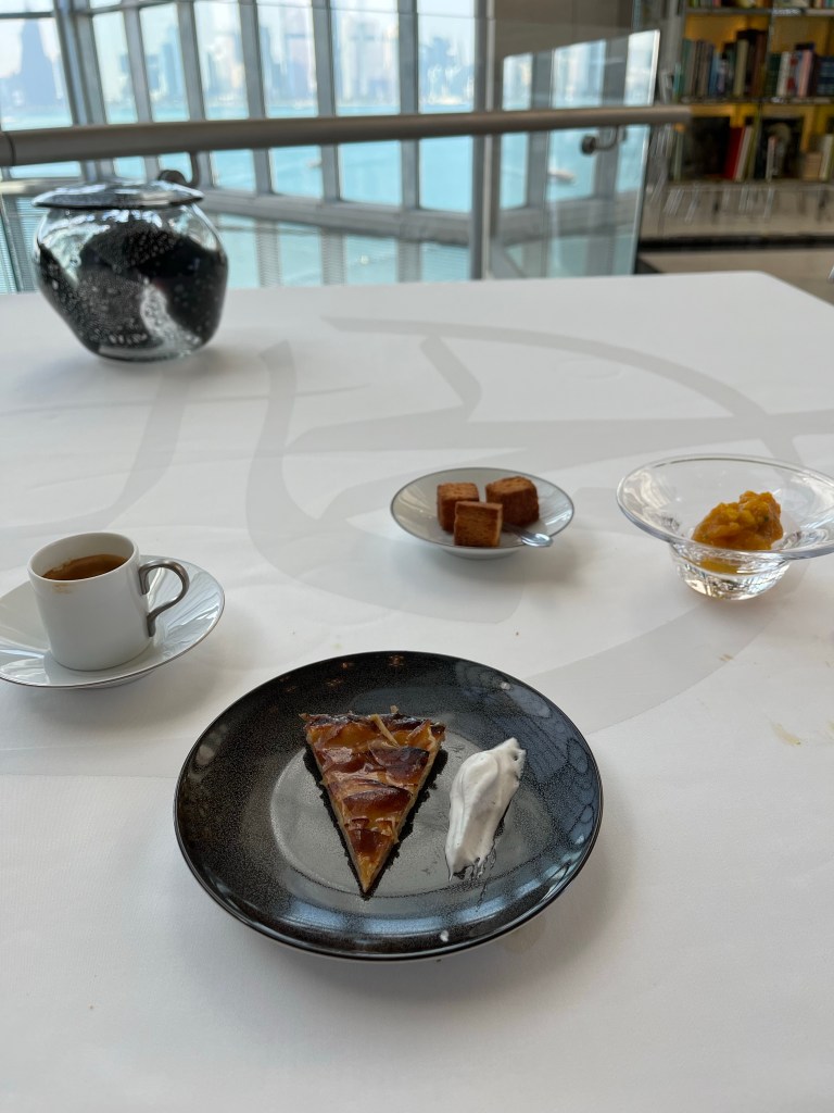 Wow. I had the most amazing meal today- by accident. I was at the Museum of Islamic Art. I showed up at 1 and realized I was hungry so I thought “A little lunch before I absorb the art. Don’t want to be distracted with a growling tummy!” Well, about 9 or 12 or a million courses later I don’t think I will ever be hungry again!