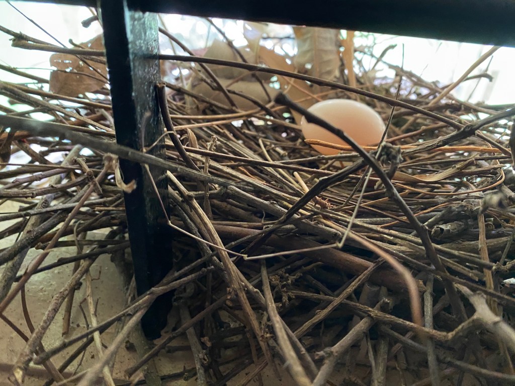 We had a bird’s nest with eggs for a few days, but the eggs were broken this morning. It made me sad.