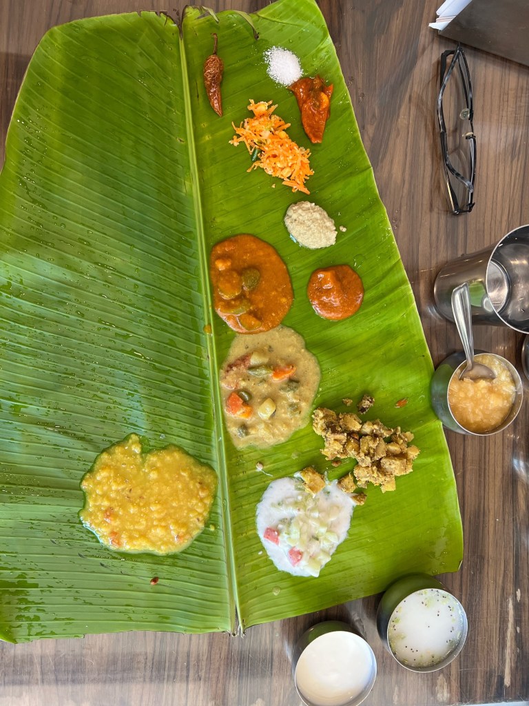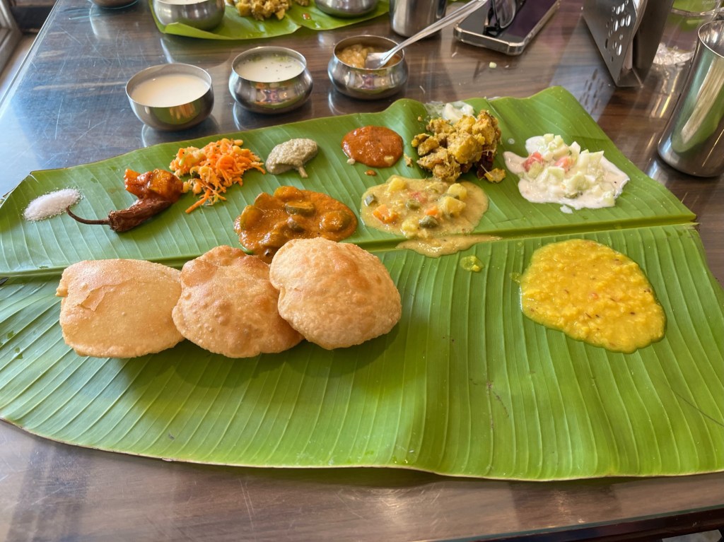 Indian cuisine is one of my favorites and I was not disappointed. I learned the food I am used to is typically northern Indian (curries and naan) and I had the great experience of having southern Indian food (dosa, idli, with dipping sauces and curries.) I became very used to eating with my right hand, though not very good at it! I sent a chicken curry back once for more hot spice, because no one assumes I mean it when I say I like spicy! Here are pictures. I don’t have a favorite!