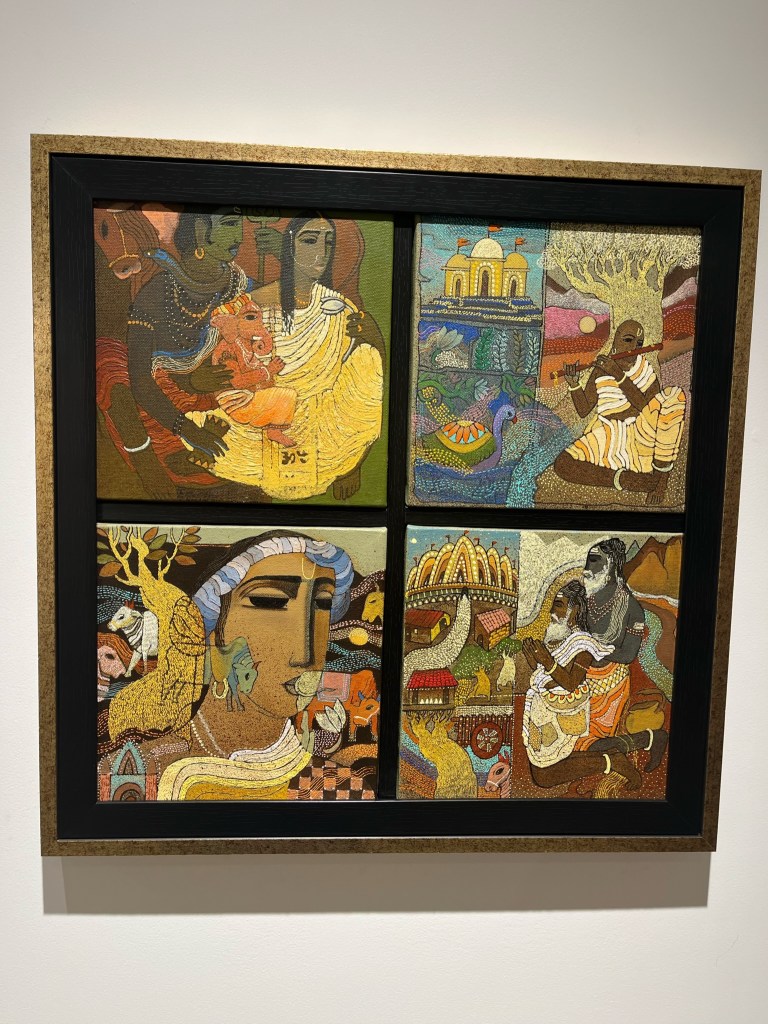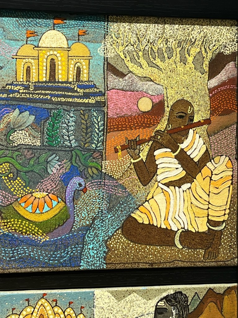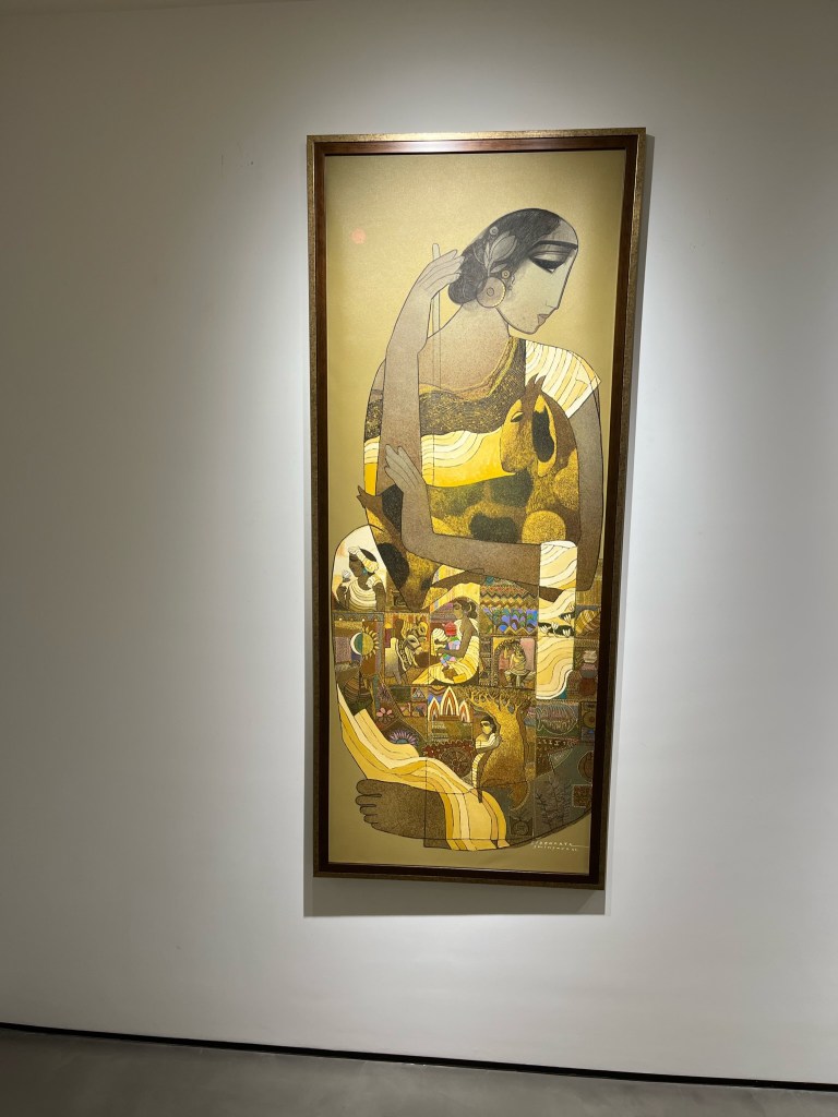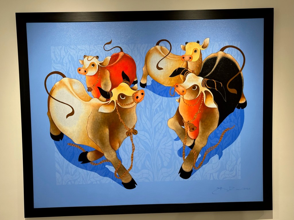 Saskya and I visited a very small art gallery that both displayed and sold beautiful modern works of art. I took a bunch of pictures for your viewing pleasure. Note how many pictures include a cow. The main artist was raised on a farm and moved to a city so you will see themes about those connections.