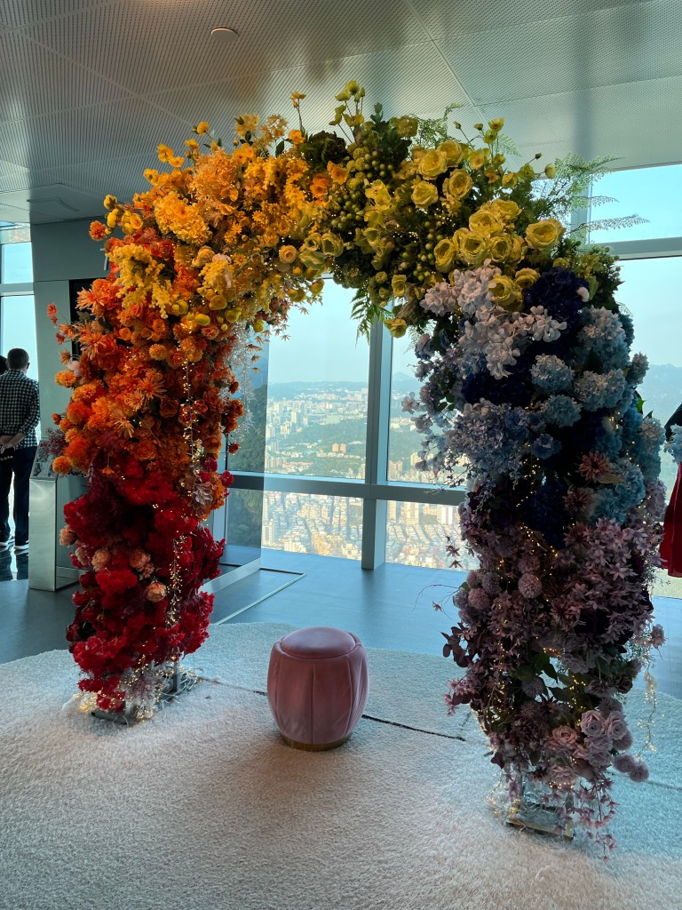 2. I have been to tall buildings in many cities: NYC, Chicago, Toronto, Seattle, Cairo. This is the first time the view wasn’t the only background opportunity. T-101 had little sets where folks could take photos.