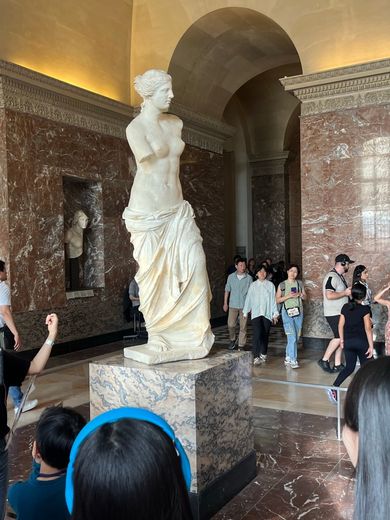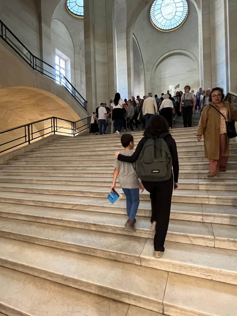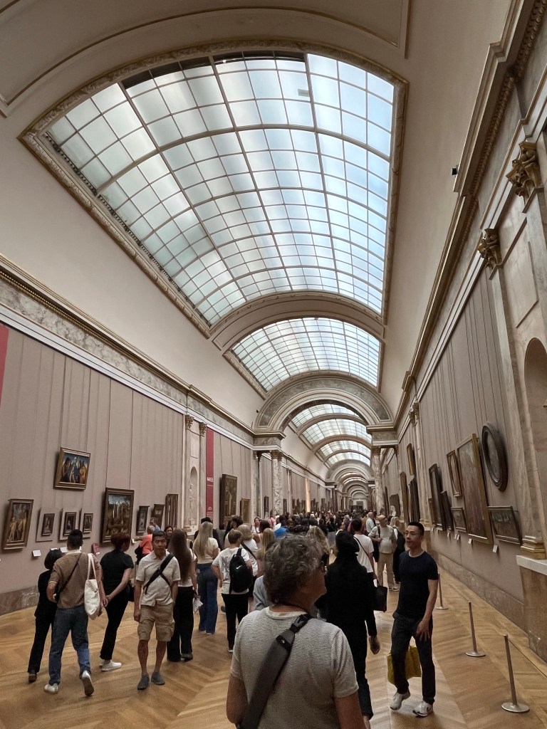 The Louvre is huge. If a person visited all the art without stopping for food or sleep, it would take over 300 days. Visiting only during open hours and stopping for lunch would take 7 years. So, we visited only some masterpieces. Masterpieces were defined as works that inspired other artists or changed the course of art. Essentially, the pieces referred to repeatedly.