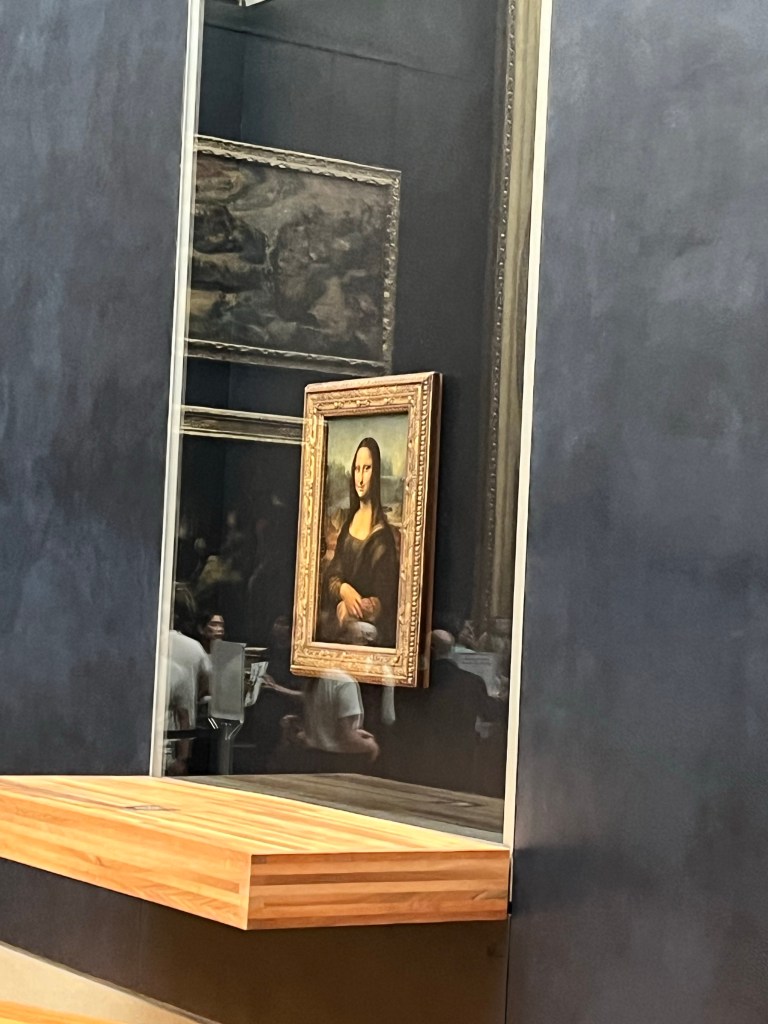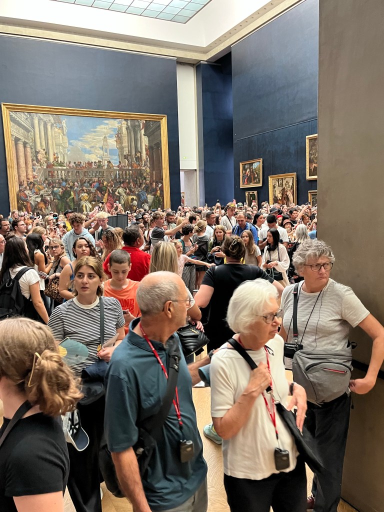 I saw the Mona Lisa in the 80s, so didn’t push through the huge crowd to get a close look. The crowds in the 80s were smaller, even though my visits were peak tourist time. The phenomenon of its popularity intrigues me as much as the painting itself.