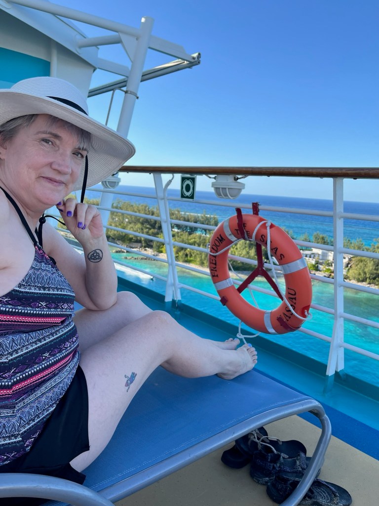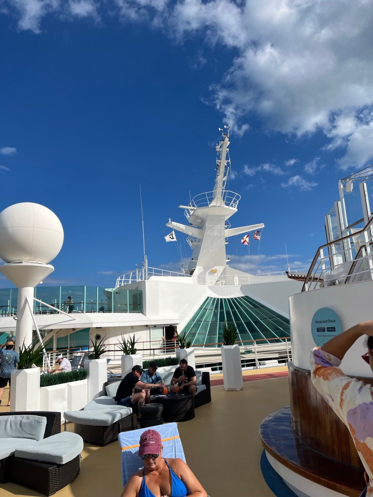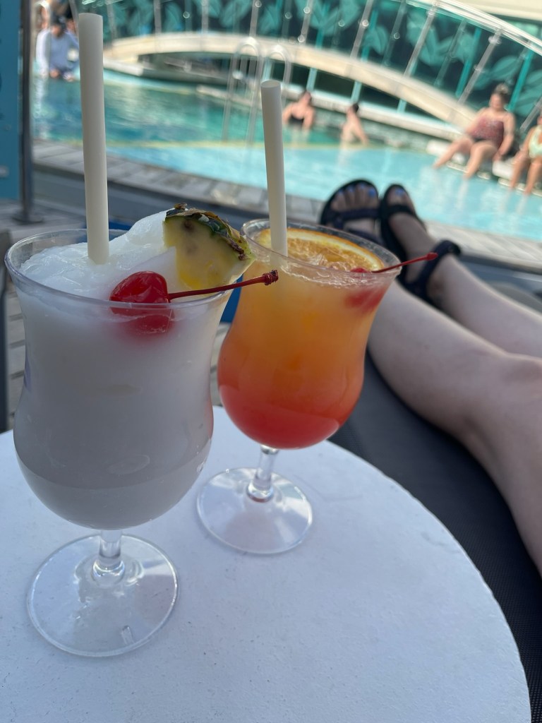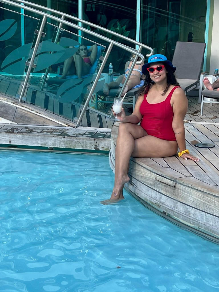 – Lounging on deck is relaxing! I kept having the urge to do organized activities, but sunbathing by the pool (or in the shade for me…) was so relaxing.
