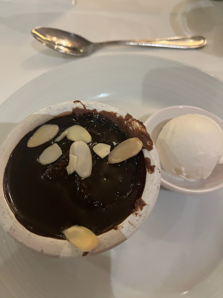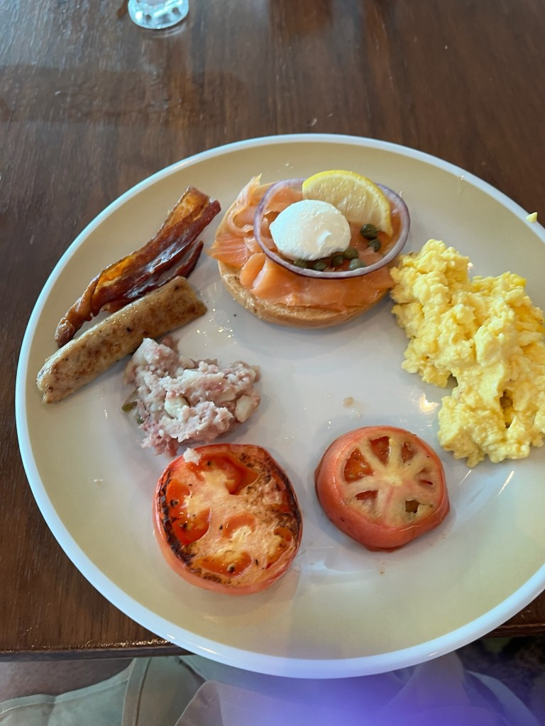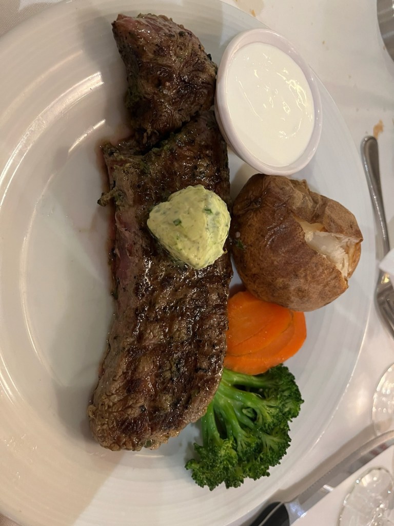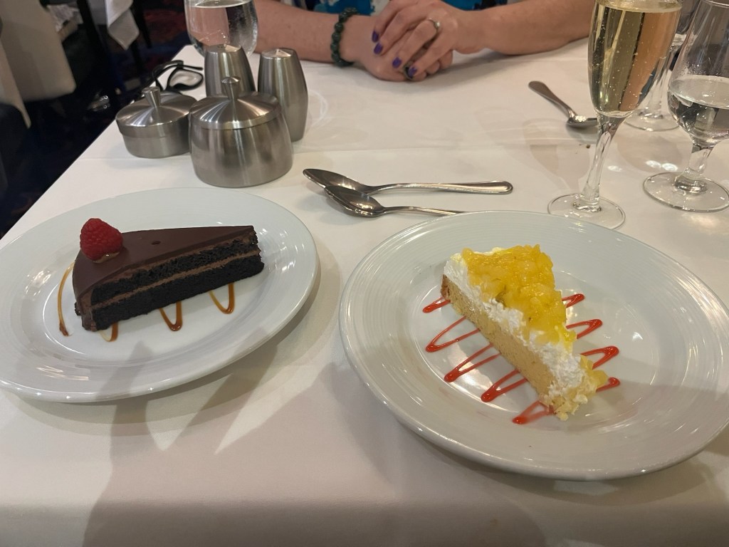 – Unlimited food is enticing, but in the past would have been challenging for me (overeating is just so much fun!). To maintain a healthy weight this vacay, I focused on delight. I never try to “get my money’s worth” at buffets anymore: I used the practice of taking a small amount of what I wanted so I could taste a wide variety of offerings. If it didn’t delight me, I left it on my plate. If it did delight me, I waited to see if I was still hungry before getting more. Dinners weren’t buffet style; three courses. I sometimes got 2 appetizers with no entree or no dessert. I did not always turn away desserts, though, because a few bites delighted me. I didn’t overthink it, but I was sensible, listened to my body and chose to enjoy everything I put in my mouth. Delightful.