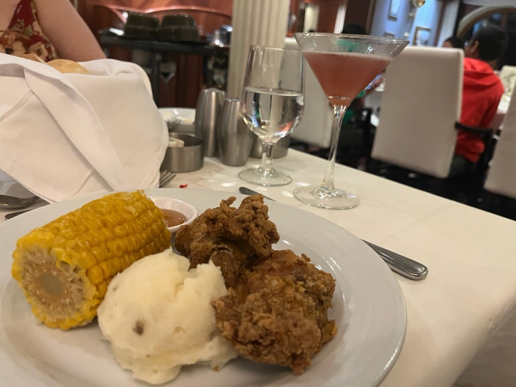 – Clothing was generally casual – not like in the 70s where dress clothes were required every night! But I’ve been told most cruises have one “dress up” dinner. We opted to dress up a bit every night and had fun with it!